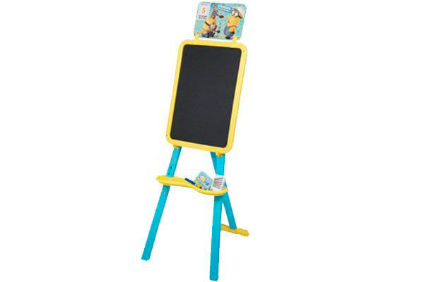 Het Minions at work schoolbord is dubbelzijdig te gebruiken. Je hebt de beschikking over een krijtbord en een whiteboard. Het handige opbergvakje biedt plek voor de krijtjes, wisser en pen (inclusief). Het Minions bord is in hoogte verstelbaar.